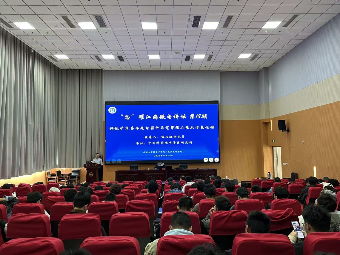 10月24日下午,中国科学院半导体研究所研究员、博士生导师张兴旺应邀做客我院“芯”耀江海微电讲坛第18期,作了题为《钙钛矿半导体光电器件与宽带隙二维六方氮化硼》的学术报告。